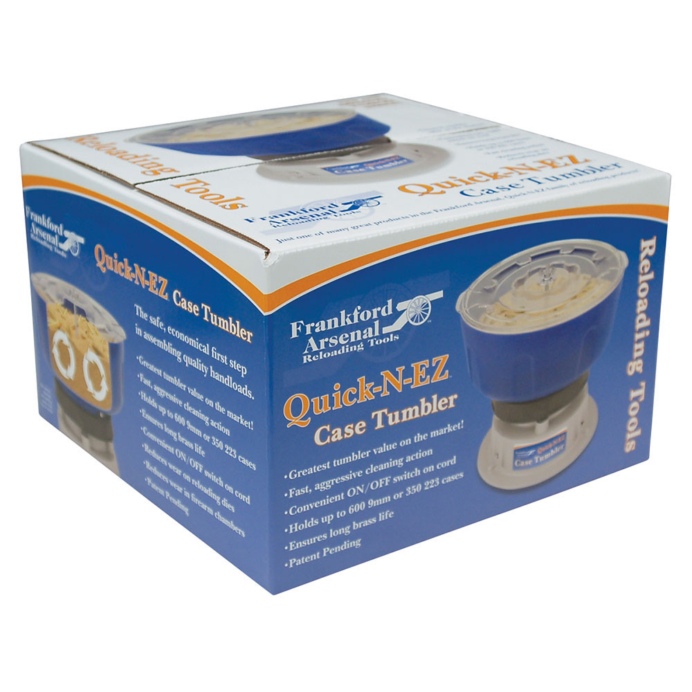 Frankford Arsenal® Quick-n-EZ™ Case Tumbler to doskonałe rozwiązanie do szybkiego, łatwego i ekonomicznego czyszczenia łusek. Używając go w połączeniu z mediami z orzecha włoskiego lub kukurydzy Frankford Arsenal, Quick-n-EZ Case Tumbler skutecznie usuwa zanieczyszczenia, smar oraz utlenienia w szybki i wygodny sposób.
