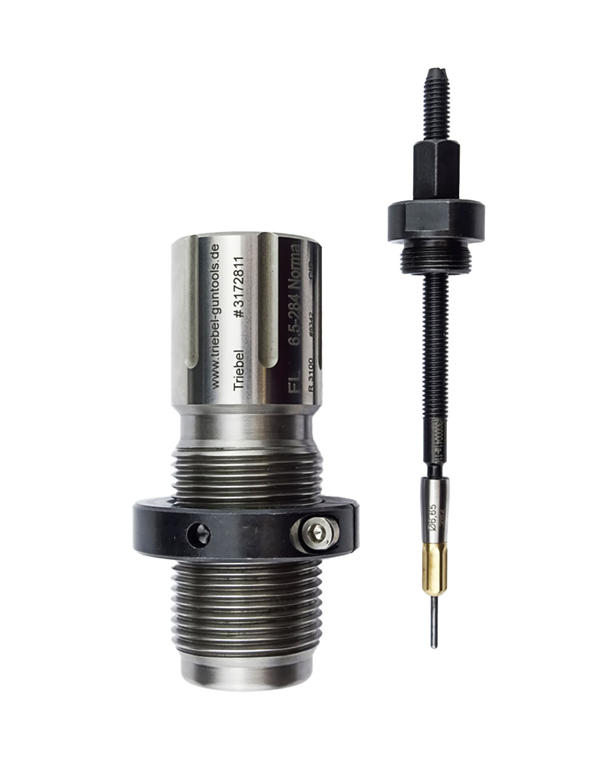W pełnowymiarowych die używane są do formowania łuski naboju na pełną długość. Oprócz wymiennego ekspandera, nasze die mają zintegrowany pin do wyrzucania spłonek. Wszystkie używane wrzeciona, ekspander oraz pin wyrzucający można łatwo wymienić, jeśli zajdzie taka potrzeba, przy minimalnym wysiłku. Kalibracja odbywa się, gdy łuska naboju jest wciśnięta do die. Szyjka łuski jest kalibrowana od wewnątrz, gdy jest wyciągana z die. To formuje łuskę naboju i osiąga prawidłowe napięcie szyjki. Prawidłowa pozycja die w prasie jest ustawiana za pomocą nakrętki blokującej. Wszystkie istotne komponenty mają numer artykułu, co ułatwia ponowne zamawianie, jeśli zajdzie taka potrzeba. Dalsze instrukcje i pomoc w doborze akcesoriów i części zamiennych znajdziesz w instrukcji obsługi.