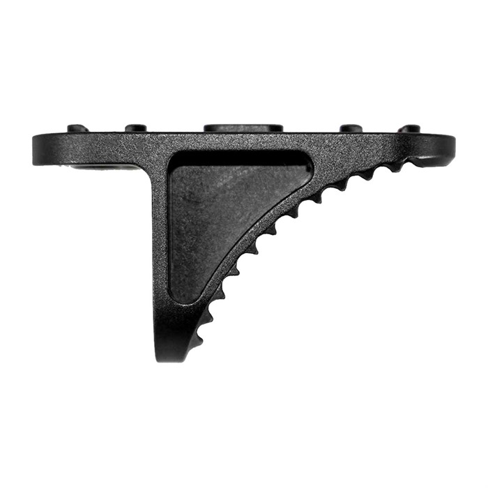 Wykonany z wytrzymałego aluminium 6061 T6 i anodowanego zgodnie z normami MilSpec, GripStop jest mniejszy niż uchwyt pionowy, ale większy niż uchwyt ręczny. Lekki i smukły, GripStop był pierwszym produktem, który właściwie zajął się ergonomią strzelca. Unikalny ząbkowany przód pozwala strzelcowi na „ciągnięcie” broni do tyłu w kierunku kieszeni barkowej, utrzymując solidny chwyt na broni z ręką wspierającą.