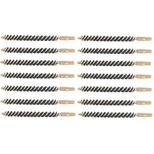 Superagresywna szczotka nylonowa sprawia, że usuwanie uporczywych osadów z lufy jest szybkie i efektywne. Dodatkowo, szczeciny o dużej średnicy są wystarczająco sztywne, aby skutecznie czyścić, a jednocześnie bezpieczne dla gwintów i gładkich powierzchni lufy. Nie ulegają zniszczeniu podczas używania z ulubionym rozpuszczalnikiem. Mocny, jednoczęściowy, pętelkowy i nawinięty mosiężny trzpień oraz złącze zapobiegają zarysowaniom.
