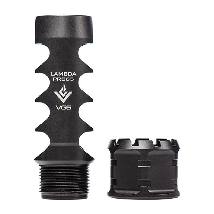 If you've ever dealt with the frustration of having a muzzle brake that just won't stay tight, then the VG6 Precision Lambda PRS65 Precision Muzzle Brake is exactly the product you need on your precision rifle. Thanks to the innovative design of this device, you'll never have to worry about your timed and tuned muzzle brake falling out of whack again. Built with a two-piece, four-chamber design, the VG6 Precision Lambda PRS65 Precision Muzzle Brake requires no tools for installation, instead relying on a jam-nut that actually works in concert with the baffles to tighten itself against the barrel during every shot. Of course, thanks to the redirected gases ported from the four chambers, felt recoil is essentially eliminated with this device. Fits 6.5 Creedmoor and 6.5 Grendel barrels Fits 5/8-24 TPI threaded muzzles All-black finish Weighs 0.29 pounds Each VG6 Precision Lambda PRS65 Precision Muzzle Brake is machined from 17-4ph stainless steel and is finished with a heat treatment that enhances service life. The brake can be had in either an all-black finish.