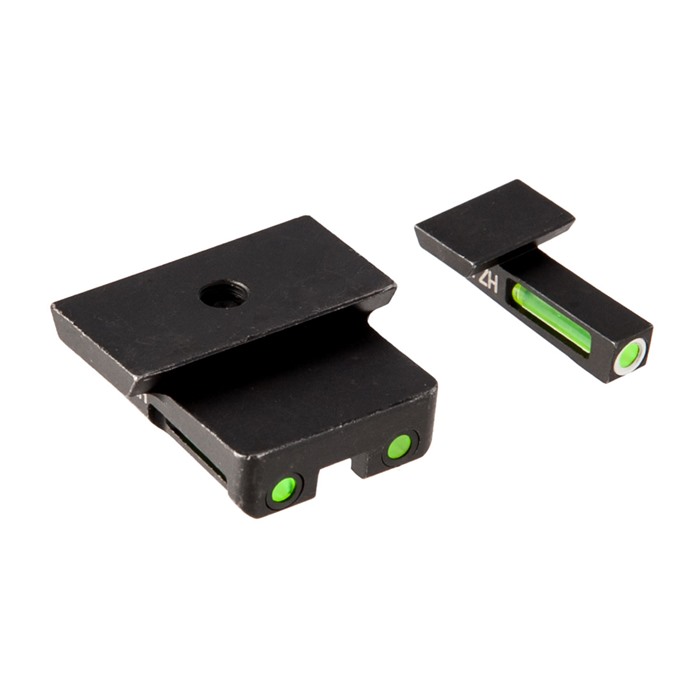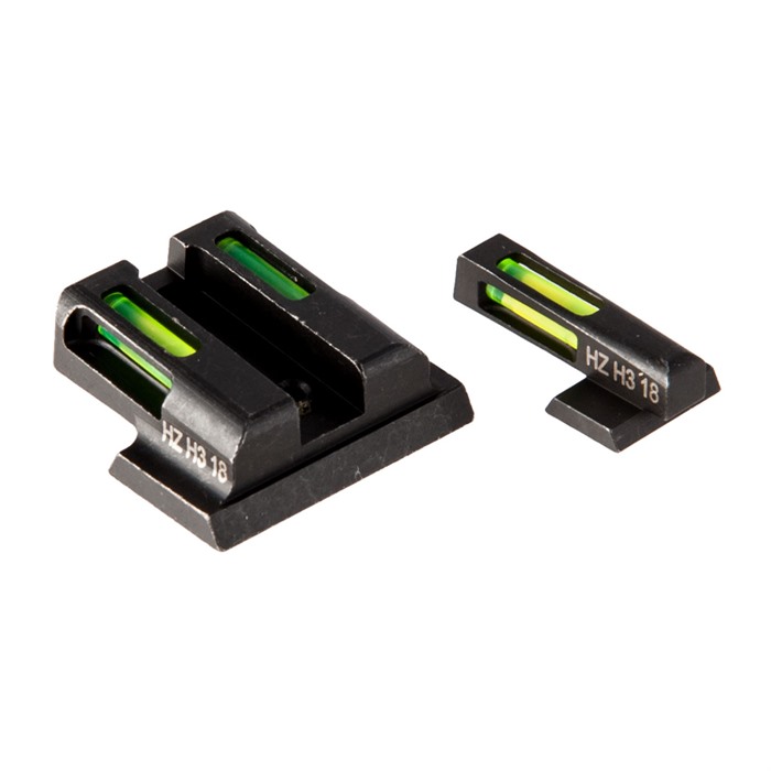 LiteWave H3™ Green Sights from HIVIZ deliver a one-two punch of Tritium and LitePipe fiber optic technology to ensure you can see your pistol's sights 24 hours a day in ANY light conditions. The LitePipe fiber optic rods gather ambient light to produce bright green aiming dots that are as easy to acquire in the sunlight of high noon as in the gathering shadows before sunset. At night, the LiteWave H3™ sights' green self-illuminating Tritium inserts - filled with extra-bright "H3" Tritium gas - take over to maintain full visibility of those three dots. Day or night, a white outline around the front dot helps the shooter distinguish it from the rear dots. Exceptional visibility in ANY light conditions Traditional, intuitive horizontal 3-dot pattern All dots are GREEN - other colors available separately White outline differentiates front dot Steel sight bodies with durable satin black finish Fits factory dovetails Factory height - will not interfere with standard holsters 1911 set fits all Kimber pistols with fixed sights; does not fit Micro Glock models available for standard, large, and G42/43 frame pistols & fit all "Gens" Smith & Wesson M&P fits full-size & compact pistols in all calibers; does not fit CORE, M&P 22 or M&P long slide Springfield XD fits XD, XDS, XDE & XD-M; does not fit XD w/5.25" bbl HIVIZ LiteWave H3™ Green sights are sold as front/rear sight sets and are engineered for a drop-in fit to your pistol's factory slide dovetails (screw holes, in the case of Glocks). Sight bodies are made entirely of steel to ensure thorough protection of the Tritium and fiber optic inserts. Sights are sized for proper clearance in standard holsters for your pistol. Isn't it about time to ride the Wave? Put a set of HIVIZ LiteWave H3™ Green Sights on your pistol, and enjoy the peace of mind you get from knowing whatever the situation you won't lose time trying to find your sights!