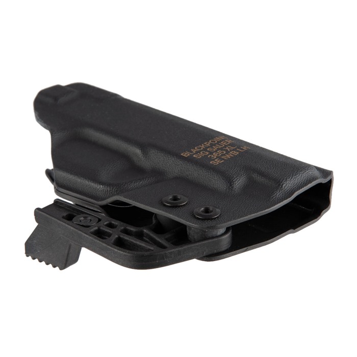 - Używaj kabury tylko z modelem P365XL. Kabura nie jest kompatybilna z P365XL z zewnętrznym manualnym zabezpieczeniem.