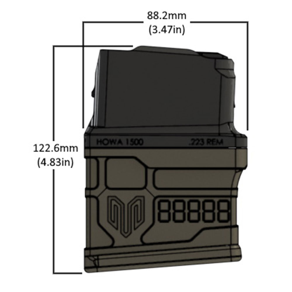 Howa 1500 and Howa mini 10 10 round magazine with 223 Remington, 7.62x39 and .300Blk (mini), 308 Winchester, .243 Win, 6.5 Creedmoor) - with Mamba bottom metal.