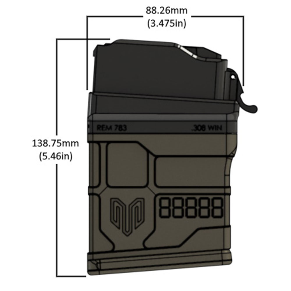 - Magazynek Remington 783 10 nabojów z .308 Winchester (w tym .243Win, 6.5 Creedmoor) - z dolnym metalem Mamba.