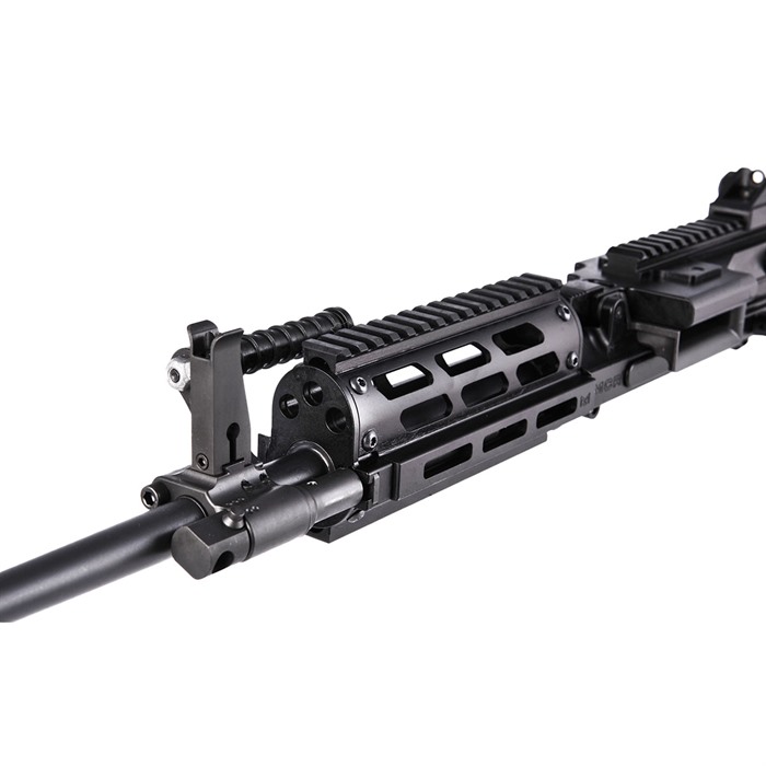 MCR Dual-Feed 223 Wylde Semi-Auto Upper Receiver Assembly Drop-On Upper Receiver Assembly that upgrades your Standard lower receivers or Rifles 16.25” Quick-Change Barrel .223 Wylde, 1:7” RHT, ½”-28 TPI Short-Stroke Gas Piston Operation Dual Feed – Accepts 4179 STANAG Magazines & M27 Linked Ammunition Precision Machined 7075-T6 Billet Upper Receiver, Feed Cover and Charging Handle Precision Machined Billet Steel Feed Tray Finish – Manganese Phosphate & Type III, Class 2 Hardcoat anodize - Black Semi-Auto Bolt Carrier Semi Auto Upper Receiver (no auto-sear pocket) Handguard Style – Classic, MIL-STD 1913 Rail or MIL-STD 1913 Rail at 12 o'clock M-LOK at 3, 6 & 9 Adjustable Sight Set Quick-Change Barrel Handle Ships with Main Action Spring, Bolt Catch, Carbine Stock Spacer, (100) M27 Links & Operator’s Manual Made In USA