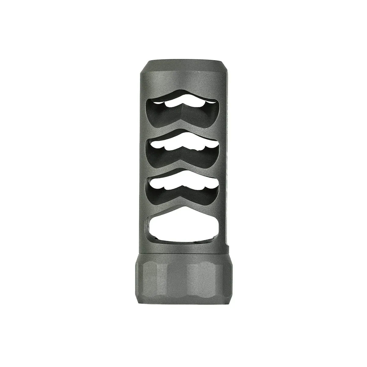 - Geometria portów precyzyjnych: Niestandardowo kątowe porty kontrolują wzrost lufy, co pozwala na szybsze strzały follow-up i lepsze śledzenie trafień — nawet z nabojami magnum.