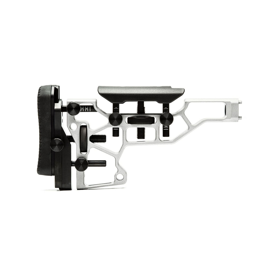 Beznarzędziowa regulacja MDT Skeleton Rifle Stock podnosi komfort i osiągi strzelca. Dzięki poziomej, pionowej i kątowej regulacji podnóżka i poduszki policzkowej, zapewnia idealne dopasowanie do Twojej pozycji strzeleckiej.