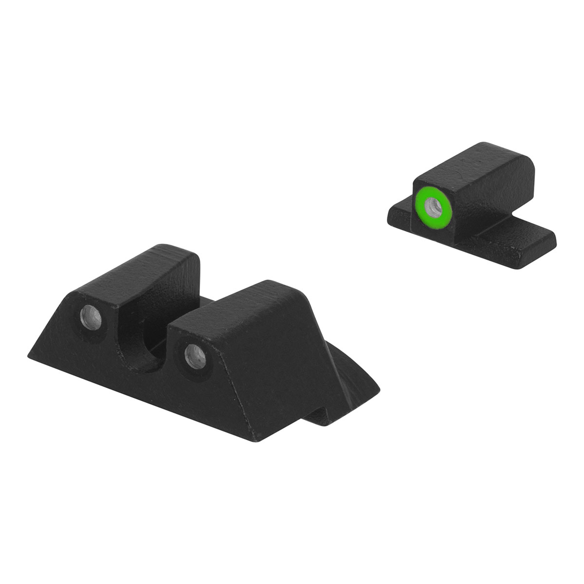 The Mepro HYPER-BRIGHT fixed Day and Night Sights provide the most reliable illumination day or night. Mepro HYPER-BRIGHT fixed sights feature an extremely bright contrast colored ring for fast accurate target acquisition in the daytime. Both rear and front tritium sources will appear green during lowlight and no light scenarios providing the upmost confidence in their ability to make hits when it counts.