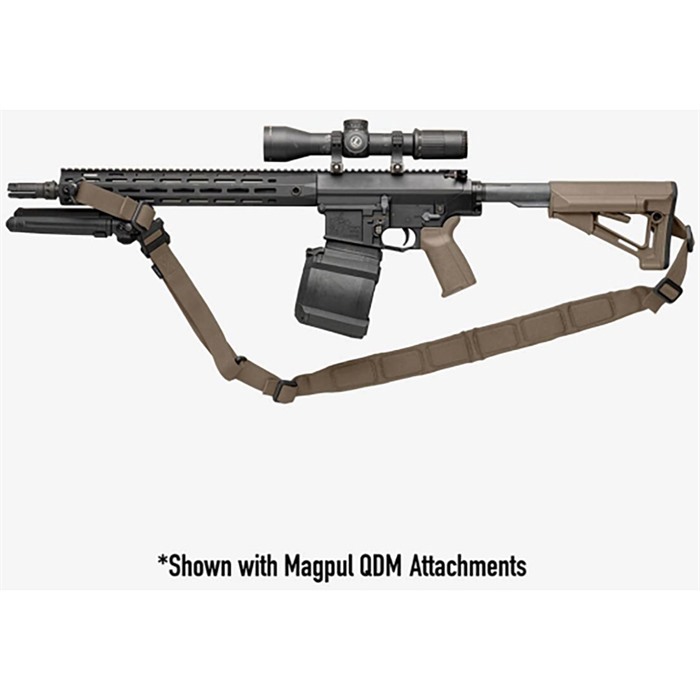 This sling is comfortable for carrying rifles and shotguns across your back or at sling arms. The padding is wide and comfortable where it contacts your body. I have one on my Benelli SBE II and one on my Garand M1 and it makes the carry much more comfortable than the 1 inch slings. The sling is well made, but then it is a MagPul.