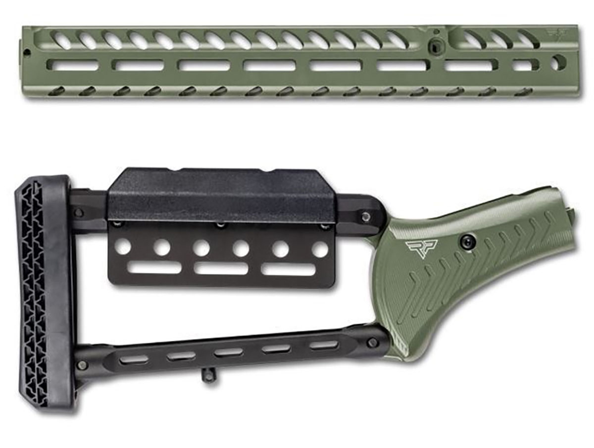 850078134417 Ranger Point M-LOK Handguard for Marlin 336 and Compatible Models Fits: Glenfield, Marlin 336 30-30, 30-30AW, 35 Rem, 444, 41 Mag, 1894C, and CS 357 Does not fit: Marlin Dark 30-30, octagon barrels, Marlin P/CL, 444 barrel band models (requires new dovetail cut). Specifications Material: Precision-machined from solid billet aluminum for maximum rigidity and reduced weight. Length: 13.25" (336.5 mm) – Width: 1.5" (38 mm) – Height: 1.6" (40.6 mm) – Weight: 5.8 oz (165 g). 24 M-LOK slots, 4 flush cup holes for sling swivels. Secure bedding with 4 set screws to prevent lateral shift. Ergonomic design: Slim profile, deep finger grooves, flat bottom for rest stability, enhanced grip texture. Integrated loading port cutout for easy tube reloads. DIY-friendly, easy installation. Compatible with shortened barrels and suppressors. Deburred and polished for smooth, comfortable handling. Includes: 1x Ranger Point M-LOK Handguard (13.25") with barrel band and screws. Ranger Point Adjustable Butt Stock Material: 6061 billet aluminum, KG Gun Kote (Moss). Weight: 22 oz (624 g). Adjustable cheek riser and AR-style 6-position butt plate with DEAD BLOW recoil pad. M-LOK panel with two sling swivel holes (left/right installation). Ideal for tall optic setups with customizable comb height.