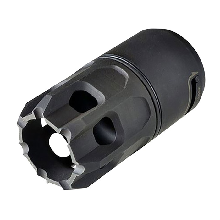 The Strike Industries Oppressor represents the next evolution in concussion reduction devices. Typical concussion reduction devices simply sleeve the brake, with a simple open end to redirect gasses. The OPRESSOR is compatible with the SI muzzle devices to include: Venom-FH, Checkmate Comp, King Comp, MK-9 Comp, J-Comp Gen2, Sierra Comp, and Triple Crown Comp. While this does accomplish reducing side concussion, braking performance becomes reduced as well. Designed with computer aided flow dynamics, the SI Oppressor provides a no compromise solution for redirecting the overpressure produced by aggressive brakes and compensators. Advanced internal geometry actively draws the gasses out and thrusts the gasses forward through vents to accomplish linear braking in order to retain more braking efficiency. Using a proprietary quick detach mounting system, the Oppressor can be rapidly installed before transitioning to prone shooting positions, or for indoor use.