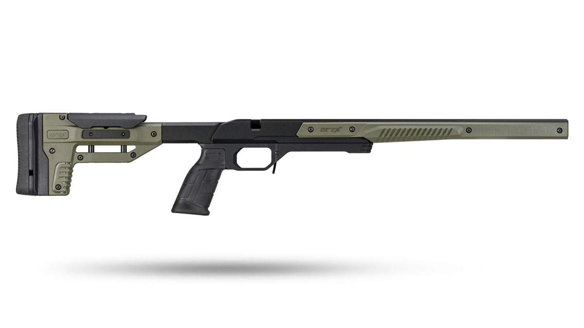 It takes AR15 grips, ARCA rails, M-Lok accessories and has customizable colors. It's designed as an excellent upgrade for shooting matches, hog or coyote hunting, or anyone interested in getting into long-range shooting.