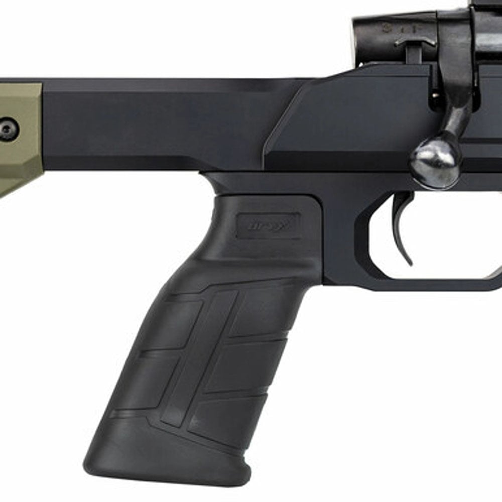 Our ORYX Sportsman Chassis was designed to be the best aftermarket approach to shooting a precision rifle. The V-shaped bedding and free floated forend was engineered to improve accuracy and ergonomics. This solid aluminum chassis excels in performance over your factory stock to maximize your rifle's capabilities. When you get behind this chassis and take up a sight picture you will feel a more solid connection between you and your rifle. The adjustable buttstock allows you to tailor a much better fit for accuracy and speed when getting behind your scope. It takes AR15 grips, ARCA rails, M-Lok accessories and has customizable colors. It's designed as an excellent upgrade for shooting matches, hog or coyote hunting, or anyone interested in getting into long-range shooting.