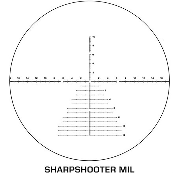 - Reticle Sharpshooter FFP z grawerowanymi siatkami zaprojektowanymi do precyzyjnego pomiaru odległości i korekcji na dużych dystansach.