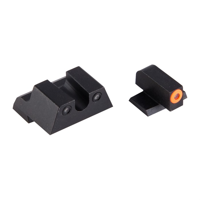 Night Fision’s Perfect Dot sights for Canik TP9-series pistols feature design upgrades that make them brighter, more vivid, and more durable than traditional night sights. Like all night sights, Perfect Dots use self-illuminating Tritium to get the "always on" glow that makes them so effective. The difference is PDs have 30% MORE Tritium in them, so they are unusually bright. And the bold front sight draws the eye, encouraging fast, instinctive "Front Sight Focus" to keep your eyes on the target. The Tritium insert isn’t surrounded by a painted-on ring, but rather one made of a daylight fluorescing material that produces optimum visibility in daylight. The result is what the Night Fision folks call the "Perfect Dot". Provides maximum visibility in both nighttime AND daylight conditions, so when the pressure is on, you’ll locate your Canik TP9’s sights quickly - and get them on target fast. Robust machined 4140 steel sight bodies - far stronger than the factory plastic Matte black Nitride finish - excellent wear- and corrosion-resistance Tritium vial has extra protection from knocks & dings Variety of front dot colors & rear notch configurations to choose from (see below) Sold as front/rear pairs only We are offering Perfect Dot sights to fit TP9SFL / TP9SFX pistols in the factory heights. A separate model fits TP9SA / TP9SF / TP9SF Elite Canik pistols. Options include a choice of Square or U-shaped rear notch in plain Black (no inserts) or with Tritium dots (Clear) on either side of notch. Front dot options include a choice of Orange or Yellow outline around the Tritium dot. Read the listings below carefully before ordering. With so many options available, you can fit your Canik TP9 with a "Perfect Dot" night sight configuration that’s... perfect for you.