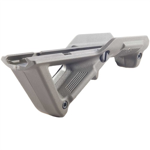 Low-profile forward grip/hand stop takes advantage of natural body mechanics to give the shooter more precise control, faster pointing, and less operator fatigue. The Magpul AFG™ (Angled Fore-Grip) positions the support hand close to the centerline of the bore for maximum recoil control to aid in fast, accurate follow-up shots. Provides a consistent reference point for finding the correct hand position quickly when mounting the weapon under stress. The natural, ergonomic hand position with the palm facing up results in better blood flow than the “clenched fist” stance often used with vertical grips that leads to fatigue and loss of sensation during long periods in the ready position. Improves on the “thumb break” hold often used with standard vertical grips by allowing the thumb to rest comfortably alongside the top rail, pointing forward, with the rest of the hand in full contact with the forend. Heavy-duty reinforced molded polymer construction stands up to the hard knocks of tactical operations, and deep, molded-in grooves help you maintain a firm grip even with wet hands. Interchangeable inserts give the choice of a straight, uninterrupted gripping surface or one with a convenient ledge to support the index finger. Slides over any Picatinny-style rail and locks securely in place with a hardened steel crossbolt. The original AFG1™ provides a large grasping surface and covers approximately 5½" of rail.