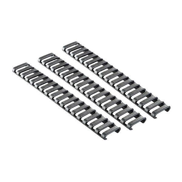 Ergo Picatinny 18-slotowa pokrywa szynowa w zestawie 3 sztuk wykorzystuje dotykową, gumową powierzchnię chwytową, dzięki czemu możesz zyskać i utrzymać kontrolę nad swoją bronią, nie martwiąc się o skaleczenia.