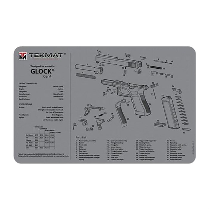 Podkładka do czyszczenia pistoletów TEKMAT to niezbędny dodatek dla każdego właściciela broni. Wykonana z wytrzymałego, elastycznego materiału, chroni wykończenie Twojej broni podczas czyszczenia i naprawy. Dodatkowo, górna strona podkładki zawiera szczegółowy wykres części Twojego ulubionego pistoletu.