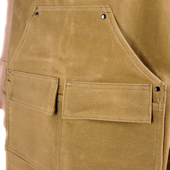 Dolna część fartucha zawiera 5 kieszeni do przechowywania narzędzi, a jedna z kieszeni ma klapkę, która pomaga w utrzymaniu przedmiotów na miejscu. Fartuch Brownells Premium Shop wyposażony jest również w pętlę na młotek, co pozwala na trzymanie wszystkich narzędzi w zasięgu ręki.