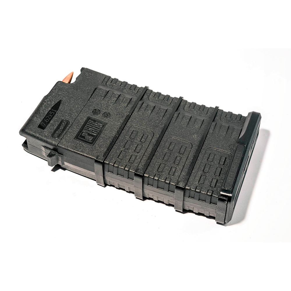 Magazynek został zaprojektowany na 20 nabojów. Oprócz szorstkiej powierzchni, zewnętrzne ścianki pokryte są wzorem bieżnika, co zapobiega ślizganiu się w dłoniach. Rozłożenie magazynka nie jest trudne. Wciśnięcie przycisku zwolnienia tylnej pokrywy umożliwia łatwe jej usunięcie, co zapewnia dostęp do czyszczenia i konserwacji.