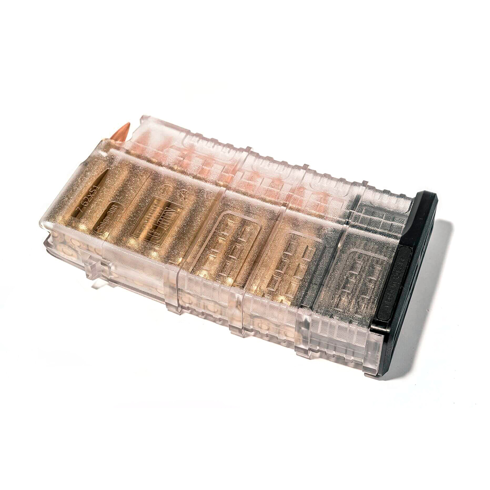 Magazynek zaprojektowany jest na 20 nabojów. Oprócz szorstkiej powierzchni, zewnętrzne ścianki pokryte są wzorem bieżnika, co zapobiega ślizganiu się w dłoniach. Rozmontowanie magazynka nie sprawia trudności. Wciśnięcie przycisku zwalniającego tylnej pokrywy umożliwia łatwe jej zdjęcie, co daje dostęp do wnętrza w celu czyszczenia i konserwacji.