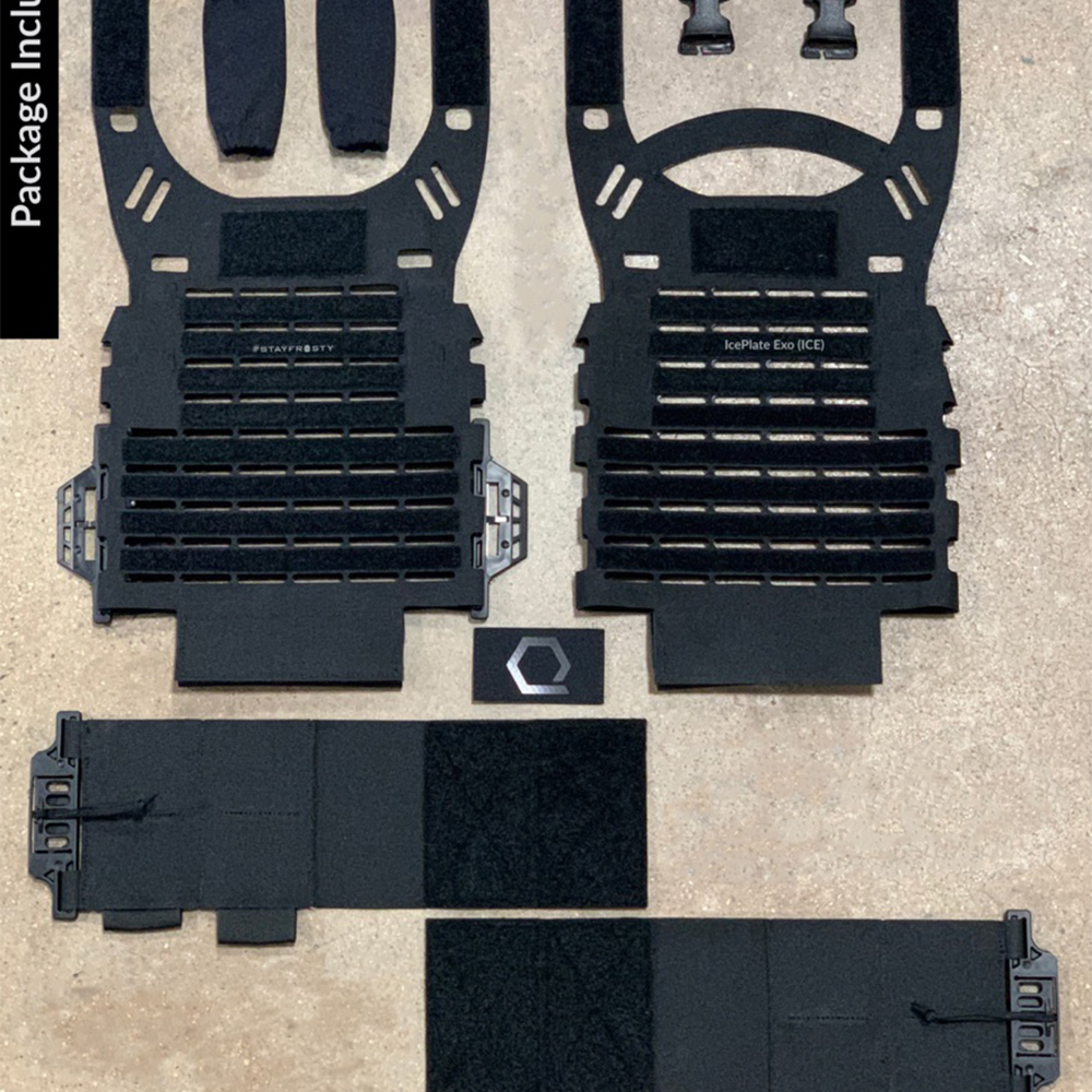 IcePlate Sleeve (już wkrótce) może być układany (za pomocą MOLLE i/lub rzepów) dla uproszczonego przenoszenia zarówno płyt zbroi ESAPI, jak i IcePlate Curve. Indywidualne IcePlate Sleeves można również zakupić i zamocować na dowolnym nośniku płyt dostępnym na rynku. Montaż i demontaż jest łatwy dzięki płaskiemu i trwałemu systemowi szybkiego zwalniania. ICE posiada również elastyczny cummerbund z czterema kieszeniami na magazyny 30-rundowe, SOARescue MedMags, radiotelefony itp. Cummerbund MOLLE ICE będzie kompatybilny z wszystkimi jednostkami ICE.