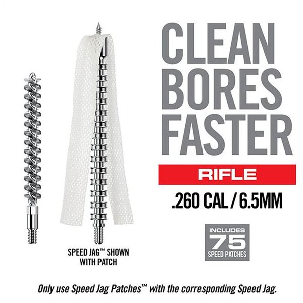System Speed Jag i Patch pozwala na wprowadzenie większej ilości materiału w lufie, eliminuje zgrubienia i maksymalizuje skuteczność każdego przejścia. Speed Patches to syntetyczny materiał, który wykazuje lepszą chłonność niż bawełna. Materiał ten jest również bardziej skuteczny w zbieraniu i zatrzymywaniu zanieczyszczeń.