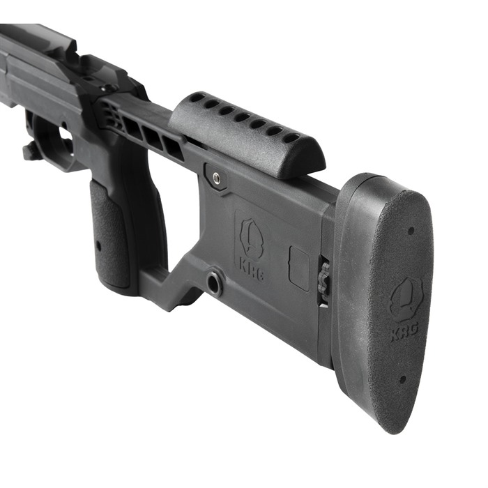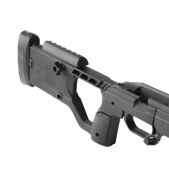 Zmiana dotyczy nowego, jednoczęściowego tylnego elementu, który standardowo wyposażony jest w regulację wysokości i kąta bez użycia narzędzi, a także w ambidextrous cheekpiece z pokrętłem. Wszystkie podwozia KRG obsługują magazynki AICS bez dodatkowych wymagań, magazynki nie są dołączone.