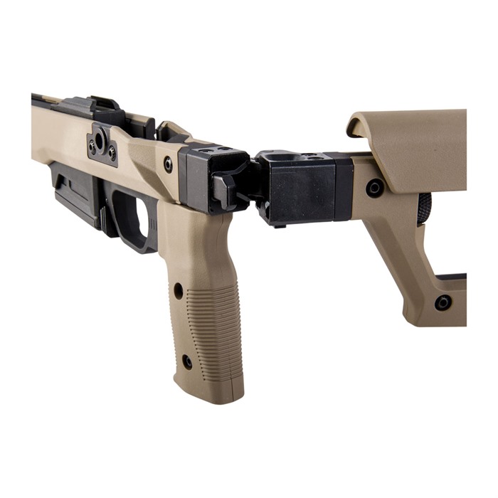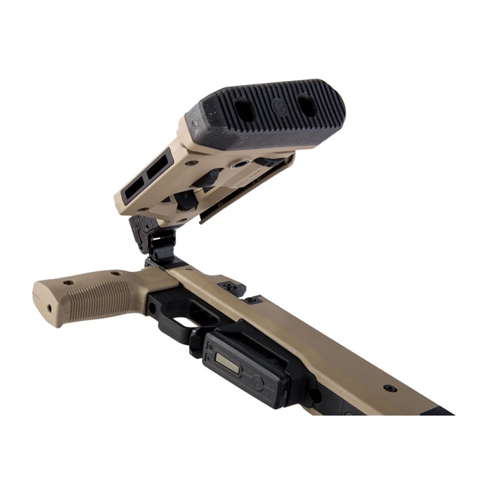 - Zintegrowany magazynek w standardzie AICS wykonany z wzmocnionego polimeru, zoptymalizowany do magazynków PMAG® 5 i PMAG® 10 7.62 AC™ oraz większości innych magazynków AICS do krótkich akcji.