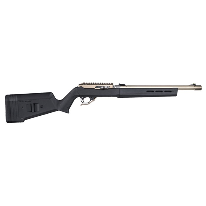 The Magpul Hunter X-22 Takedown chassis is an ergonomic, fullfeatured stock for the Ruger 10/22 Takedown series rifl e. Made from high quality reinforced polymer, the Hunter X-22 Takedown features an ergonomic grip, adjustable length of pull and comb height to fi t a wide variety of shooters, multiple sling mounting options, a non-slip rubber butt-pad, and M-LOK® slots for accessory attachment. The Hunter X-22 Takedown fits standard Ruger 10/22 Takedown .22 LR pattern rifles with no gunsmithing, and a reversible barrel tray ensures proper fit with factory pencil profile as well as heavy bull barrels. Drop-in design compatible with all factory Ruger 10/22 Takedown .22 LR receivers Reinforced polymer construction for strength and durability 60 degree grip angle from bore axis Adjustable LOP from 12.5”-14.5” with 0.50” Spacers Non-slip rubber butt-pad Optional Cheek Riser Kits to raise cheek height 0.25”, 0.50”, or 0.75” Reversible barrel tray accepts all factory barrels as well as aftermarket up to 0.920” Compatible with all capacities of factory Ruger 10/22 magazines M-LOK slots on forend sides and bottom for a wide variety of accessory and sling mounting options Two dimpled drill points to install optional standard swivel studs (#10-32 x 3/8” long dome stud) Push-button QD swivel compatibility in rear with optional Sling Mount Kits, Magpul item 100-010-975 Left and Right rear 1-1/4” Footman’s Loops Stock Only- Barrel and Receiver are not included