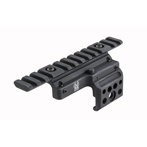 - Wyreguluj montaż GG&G Mini14 Side Scope Mount w stosunku do otworów montażowych na komorze.