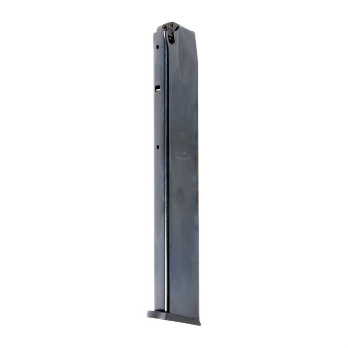 Stalowy magazynek Ruger P-Series jest zaprojektowany do użycia wyłącznie z nabojami 9mm i ma korpus magazynka wykonany ze stali węglowej poddanej obróbce cieplnej. Magazynek jest pokryty wykończeniem w kolorze czarnym, które chroni przed korozją i przedwczesnym zużyciem.