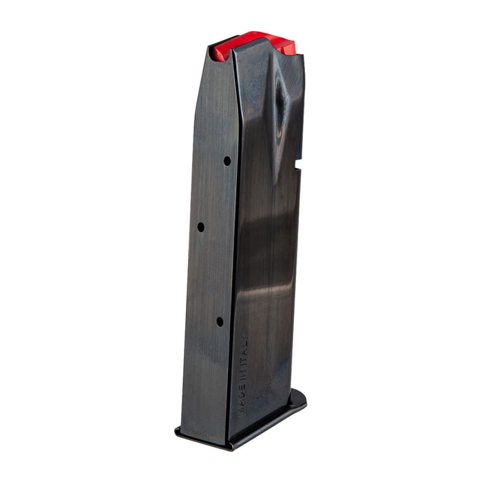 Brownells went straight to the source for quality pistol magazines, Meccanica del Sarca of Italy. Meccanica del Sarca has been producing OEM magazines for major firearms manufacturers since the late 1980s. Now, these quality magazines are available direct to you. Meccanica del Sarca stamps, welds and finishes the magazines in-house, and has strict quality controls for its heat treatment and surface finishing suppliers. These magazines feature a dark blued finish, that makes magazines changes smooth and fast. Polymer follower smoothly operates within the blued magazine body. Witness holes a the rear provide a quick assessment of remaining cartridges.