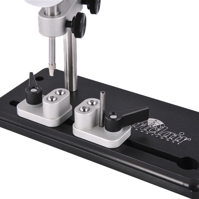 Wskaźnik współosiowości Sinclair służy do pomiaru odchylenia, obracając łuskę lub nabój na dwóch zestawach łożysk zamkniętych w anodowanych blokach aluminiowych. Te bloki łożyskowe są regulowane wzdłużnie, aby umożliwić różne długości łusek lub różne długości załadowanych nabojów.