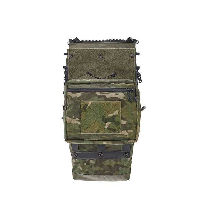 Górna część Panelu wyposażona jest w niestandardowy zamek błyskawiczny z podwójnym ciągiem, który pełni trzy funkcje. Umożliwia całkowite usunięcie klapek z rdzenia oraz ich wymianę. Pozwala na przeprowadzenie anten komunikacyjnych oraz innych przedmiotów, takich jak kable, rurki do nawadniania i narzędzia do przerywania, do i z górnej części panelu. Zapewnia szybki dostęp do wnętrza panelu bez podnoszenia całej klapki. Rdzeń Panelu Assault ma również trzy zatrzaski kierunkowe, które mocno trzymają klapki oraz utrzymują narzędzia wewnątrz panelu. Rdzeń Panelu Assault posiada 4 zewnętrzne zamki błyskawiczne do mocowania. Te zamki pozwalają na noszenie panelu w trzech konfiguracjach. Konfiguracja 1 wykorzystuje górne zamki do przymocowania panelu do torby na płyty. To kompresuje panel i pozwala na noszenie go w konfiguracji "lekiej". Ta konfiguracja panelu jest doskonała dla szturmowców, którzy chcą mieć zwarty i ciasny układ i potrzebują tylko przenosić rzeczy takie jak mały zbiornik na wodę, ładunki wybuchowe, granaty błyskowe i zestaw GP na plecach. Konfiguracja 2 wykorzystuje dolne zamki do przymocowania panelu do torby na płyty. Ta konfiguracja daje użytkownikowi znacznie większą pojemność i przekształca panel w bardziej przypominający plecak. Oferuje te same funkcje co Konfiguracja 1, ale z dodatkową objętością na większe przedmioty, takie jak radia, odzież na zimę, lekkie nosze itp. Konfiguracja 3 również wykorzystuje dolne zamki do przymocowania do tylnej torby na płyty, ale wprowadza również dolne rozszerzenie. To rozszerzenie umożliwia przenoszenie dłuższych narzędzi i przechowywanie jeszcze większej ilości dużych przedmiotów w powiększonej przestrzeni. Rdzeń Panelu Assault standardowo wyposażony jest w trwale przymocowaną dużą kieszeń GP w dolnej części. Ta kieszeń jest wyłożona rzepem do mocowania akcesoriów. Posiada łącznie dwa miejsca do mocowania wewnątrz torby do zabezpieczenia wrażliwego sprzętu. Przód torby ma zamykaną kieszeń do przechowywania mniejszych, często potrzebnych przedmiotów. Ta kieszeń ma również pole rzepowe 4" x 5" do mocowania łat identyfikacyjnych. Za kieszenią GP znajduje się ukryta komora skrytkowa. Służy do przechowywania dolnej części ładunków wybuchowych lub długopisów przerywających, gdy są one przekazywane przez klapki powyżej. Może być również używana do przechowywania sprzętu E&E lub mniejszych przedmiotów osobistych. Każda strona panelu ma sześć pętli do mocowania do zabezpieczenia dłuższych przedmiotów na zewnątrz panelu. Te pętle są doskonałe do mocowania ładunków Tri-Fold lub Bi-Fold lub innych wysokich przedmiotów. Dolne rozszerzenie ma wewnętrzny G-Hook, który umożliwia zabezpieczenie go na miejscu, jeśli trzeba przenieść cięższy ładunek wewnątrz, ale nie chcesz, aby rozszerzenie zostało przypadkowo uruchomione. Przewodnik dopasowania Torby na płyty średnie - Pasuje do dużych toreb na płyty - Pasuje, można użyć adaptera XL, jeśli masz bardzo grube płyty i przeciążasz panel. Torby na płyty extra large - Wymaga adaptera XL, aby być kompatybilnym z torbami na płyty XL. Niektóre zdjęcia pokazują opcjonalne akcesoria, sprzedawane osobno.Usunięty z programu przez producenta