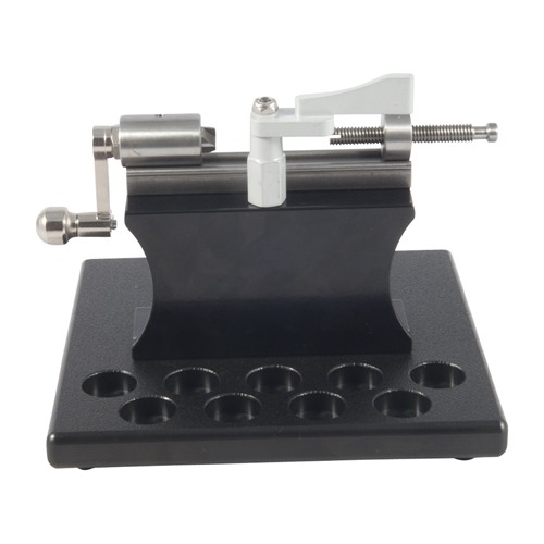 Przedstawiamy zestaw do przycinania łuski L.E. Wilson oraz uchwyt montażowy Sinclair z zaciskiem „SharkFin” (zamów uchwyty osobno). Ten uchwyt montażowy oraz zacisk przyspieszają i ułatwiają przycinanie łusek. Zacisk „SharkFin” szybko ustawia się w miejscu i zapewnia nacisk w dół na uchwyt łuski podczas przycinania.