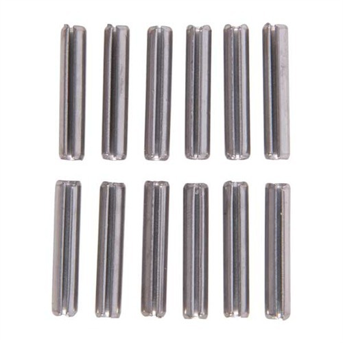 Wraz ze wzrastającym użyciem roll pinów w broni, poszukiwaliśmy dobrego zestawu wykonanych ze stali nierdzewnej, który moglibyśmy zaoferować. W końcu go znaleźliśmy - 850 pinów w 8 średnicach i różnych długościach (patrz poniżej). Powinno to zaspokoić większość potrzeb związanych z bronią! Doskonałe do innych prac w warsztacie. Można używać do tworzenia jigów, uchwytów lub do zastępowania pinów stożkowych, kołków, pinów rowkowych, śrub mocujących itp. Nie ślizgają się ani nie wibrują. Łatwe w użyciu, ponieważ nie wymagają gwintowania ani nawiercania. Można je przyciąć na dowolną długość. Użyj Roll Pin Punches do pozytywnego i bezpiecznego usuwania.