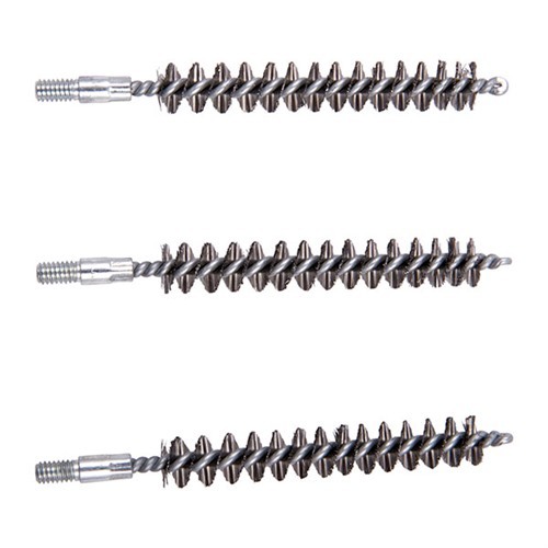 Wszystkie szczotki mają jednolitą, pętelkową i nawiniętą końcówkę (nie są to dwie, skręcone razem i przycięte). Szczotka ze stali nierdzewnej - Do mocno ołowianych, zanieczyszczonych lub zardzewiałych luf, agresywne działanie szczotki ze stali nierdzewnej może pomóc w ich czyszczeniu. Należy jednak pamiętać, że agresywne działanie przyspiesza zużycie, a regularne użycie może skrócić żywotność lufy.