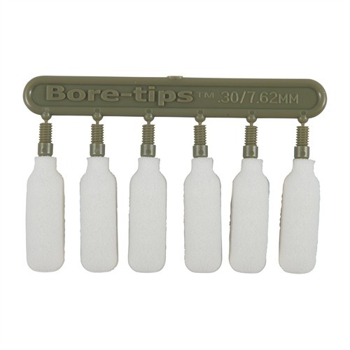 Końcówki Bore Tips to wygodne, kompleksowe rozwiązanie zastępujące tradycyjne jags i patche. Posiadają plastikowe adaptery, które pasują do gwintów 8-32 powszechnie spotykanych na prętach czyszczących, a ich żywotność wynosi do pięciu użyć.