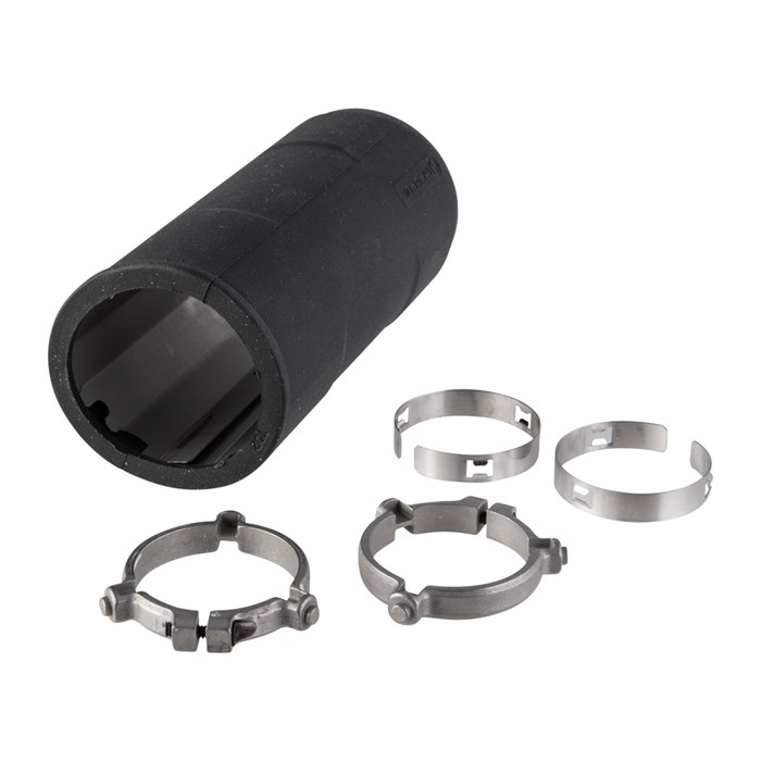 Pokrowiec na tłumik Magpul to osłona z odpornego na ciepło polimeru, nałożona na podniesioną stalową osłonę termiczną, która jest bezpośrednio mocowana do korpusu tłumika za pomocą stalowych zacisków. Minimalizuje transfer ciepła, utrzymując temperatury zewnętrzne pokrowca o 1000 stopni F niższe niż powierzchnia tłumika, umożliwiając dużą cyrkulację powietrza chłodzącego wokół tłumika.