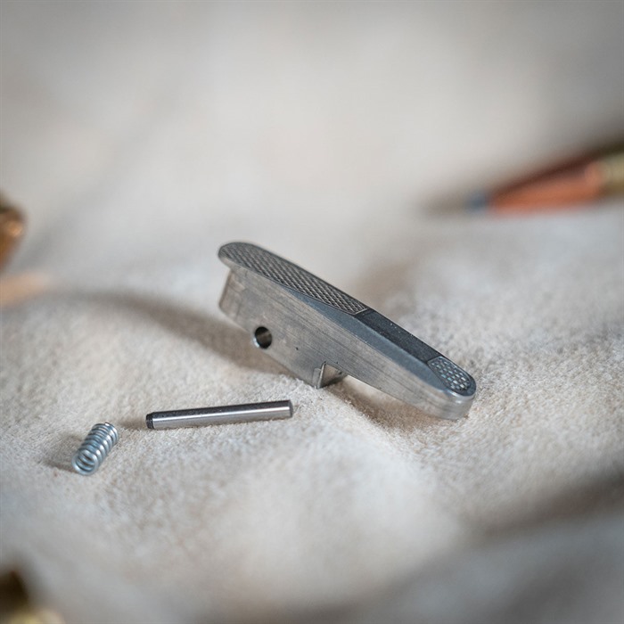 - Zdejmij oryginalny Bolt Stop z broni, postępując zgodnie z instrukcjami producenta.