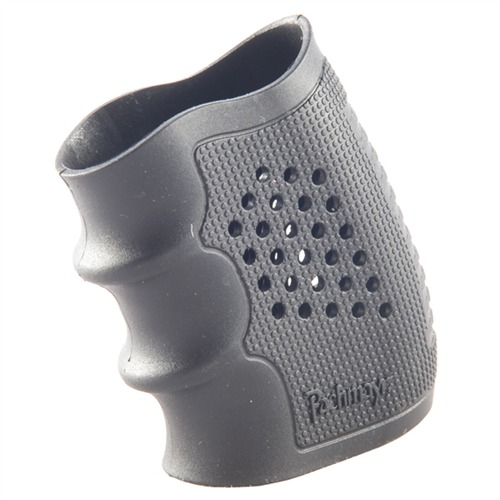 Recoil-absorbing, soft rubber sleeve offers a contoured, non-slip grip that dramatically improves shooting comfort and accuracy from your semi-auto duty pistol. Finger grooves and a slight palm swell help reduce felt recoil and muzzle jump for fast, accurate follow-up shots. Vertical and horizontal serrations provide a textured surface that’s comfortable and easy-to-hold, especially during long periods in the ready position. Slides over pistol grip.