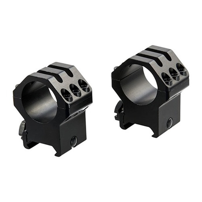 SPECS: Aluminum, hardcoat anodized, matte black. Height measured from top of base to underside of scope body. 1" High - .400" high. Accepts scopes with objectives up to 44mm dia. 1" Extra High - .525" high. Accepts objectives up to 50mm dia. 30mm High - .495" high. Accepts objectives up to 44mm dia.