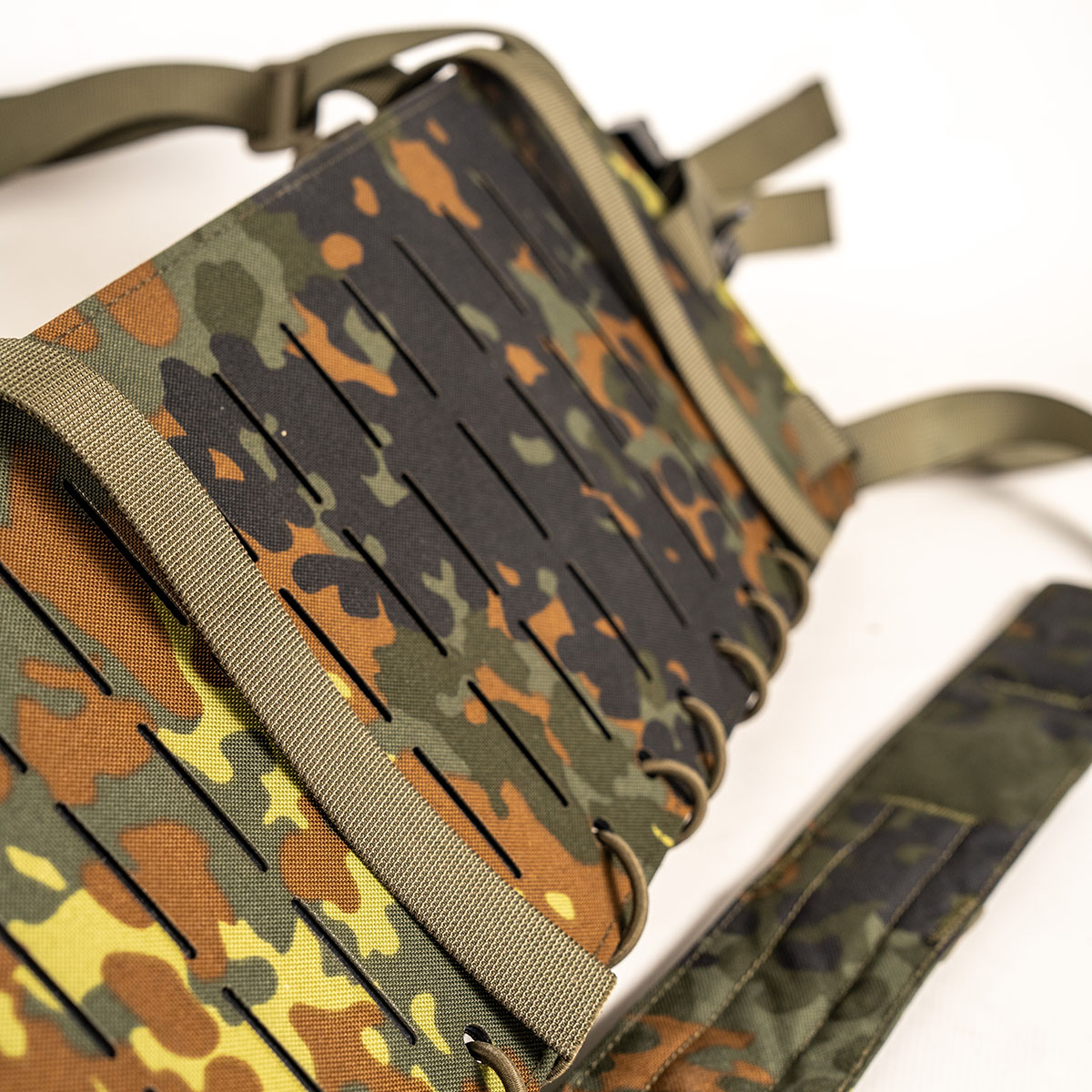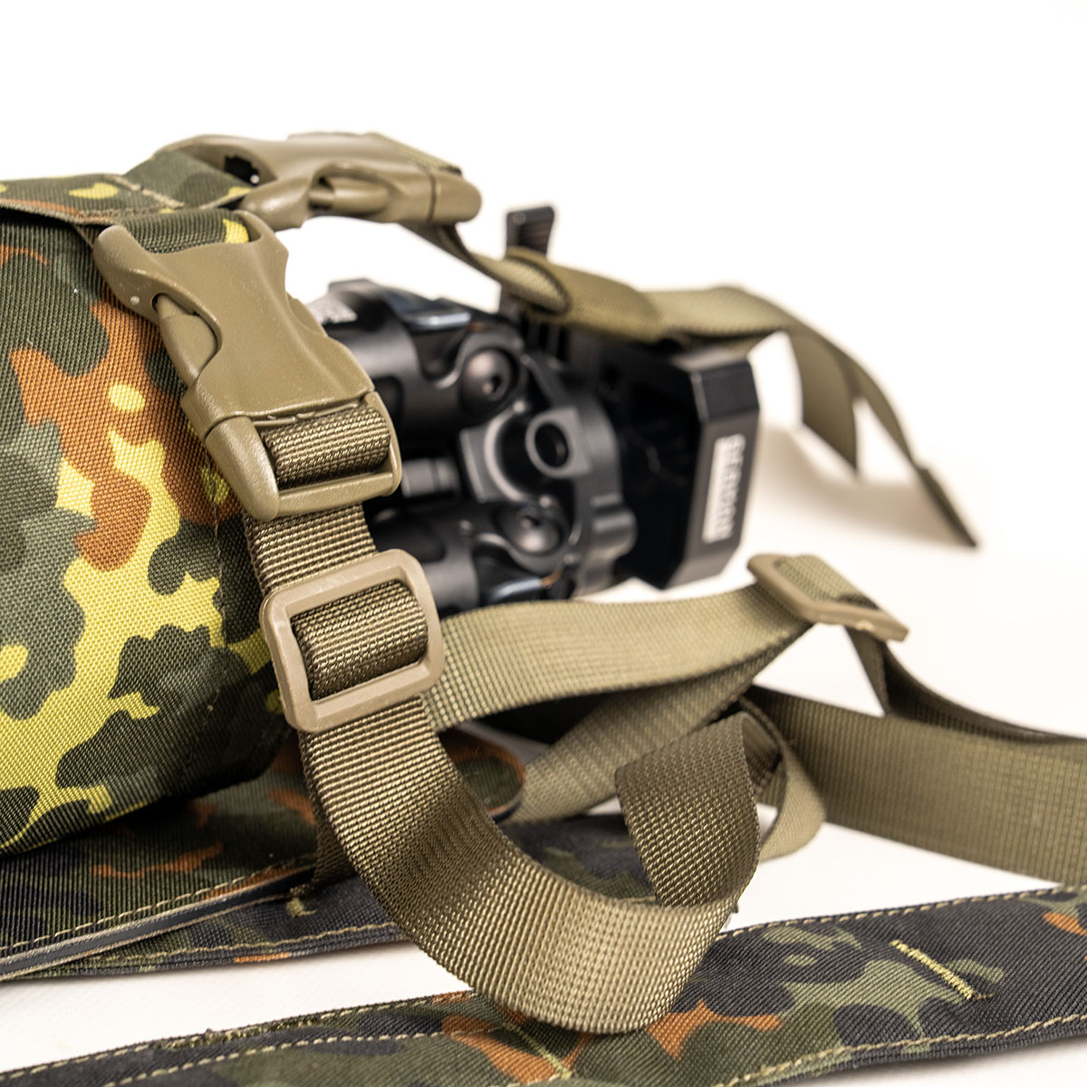 Dla bardziej kompaktowych lub opartych na pojazdach operacji, Field Rig można również nosić jako torbę na ramię. Dodatkowo, jego zewnętrzna konstrukcja kompatybilna z systemem MOLLE umożliwia bezpośrednie montowanie na nosidełku lub innych platformach MOLLE, co pozwala na płynne zintegrowanie z istniejącymi systemami nośnymi. Dzięki temu jest idealny zarówno do polowań, jak i zawodów precyzyjnych oraz profesjonalnych zastosowań w terenie.