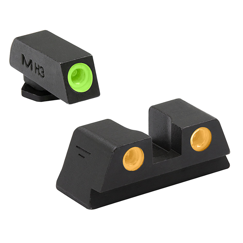 MEPROLIGHT® reaguje na potrzeby użytkowników, nasze modele TRU-DOT® są dostępne w różnych kolorach kropek trytowych na przyrządzie tylnym: Zielony, Żółty, Pomarańczowy (Żółty lub Pomarańczowy tylko dla wybranych modeli) oraz zielona kropka trytowa na przyrządzie przednim.