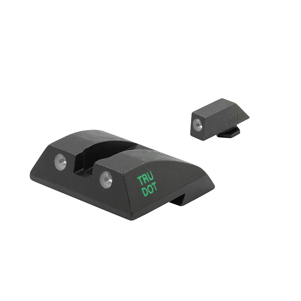 Modele TRU-DOT® oferują system celowniczy do pistoletów, który poprawia szybkie instynktowne celowanie, nie wymagając przejścia z użycia dziennego na nocne. Dzień i noc, odniesienie celownicze strzelca to trzy solidne kropki, identyczne pod względem wyglądu i lokalizacji w każdych warunkach oświetleniowych.