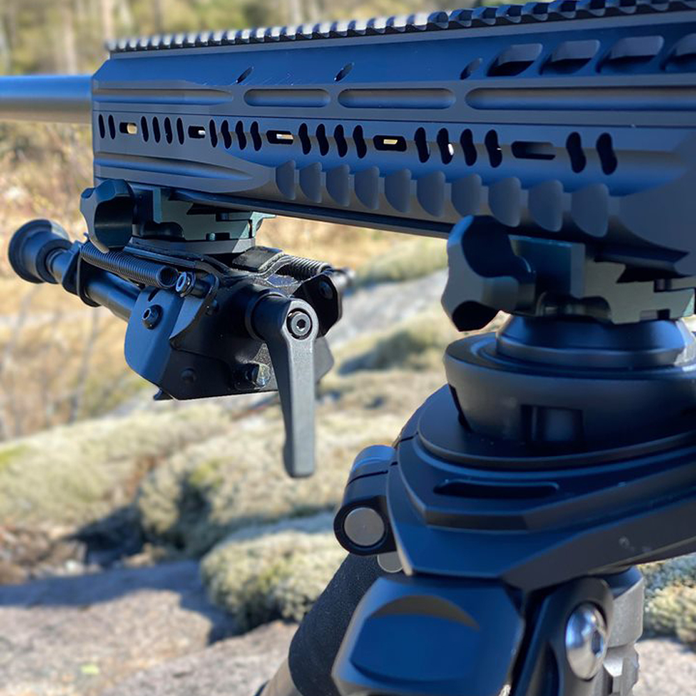 - Zamontuj bipod Harris na adapterze zgodnie z instrukcjami producenta bipodu.