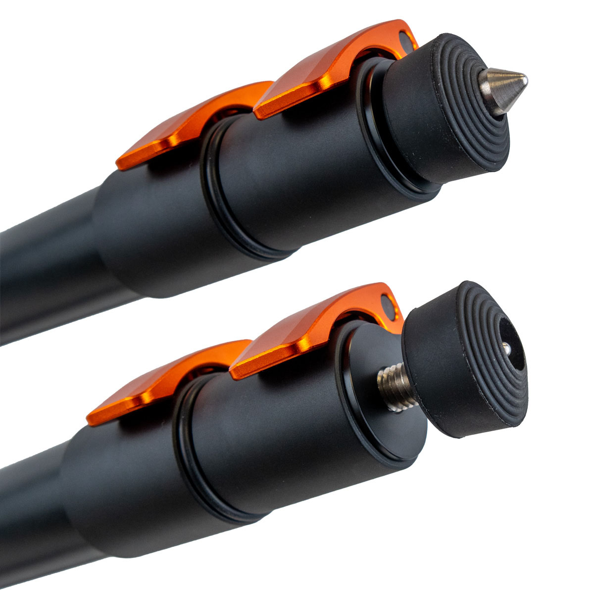 Dzięki szybkim blokadom cam możesz dostosować wysokość nóg w kilka sekund, mając pewność, że będą trzymać stabilnie podczas strzelania. Nogi wyposażone są również w podwójne funkcjonalne stopy — wystarczy obrócić, aby przełączyć się między gumowymi podkładkami do użytku wewnętrznego lub twardych powierzchni a stalowymi kolcami zapewniającymi przyczepność na nierównym terenie. Nie ma potrzeby wymiany części; wystarczy obrócić nogi, aby aktywować kolce.