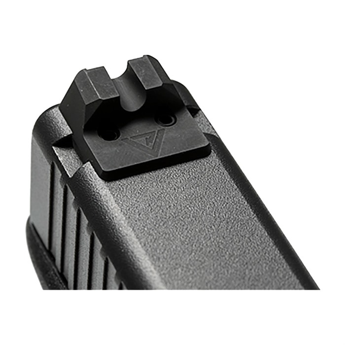 The high profile Vickers Elite Battlesight rear has a .145” wide, deep U-Notch for optimum sighting in low-light, dynamic range conditions and is a perfect match to our .125” wide front sights. The concave non-reflective rear blade is serrated 40 lines per inch, while the notch area is recessed into a semi-circular pocket for a crisp, protected sight picture. Two hardened set-screws ensure this sight will never shoot loose under the most demanding conditions. This snag-free rear sight also has a shelf shape that enables one-hand slide cycling or malfunction clearance and a rugged, non-reflective matte black parkerized finish. The Vickers Elite Battlesight is available with plain black serrated rear blades and your choice of black serrated, green/red fiber optic or tritium front sight styles. The high profile of the Vickers Elite Battlesight allows the use of a taller front sight and deeper rear notch for better sight tracking during high speed shooting situations. NOTE: Sights may require minor fitting. The Vickers Elite Glock® Sight set requires the use of a .245”tall front sight for all caliber Glock® pistols except for .45 ACP and 10mm which will typically require the .230” front sight.